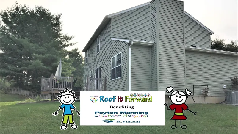 This Noblesville Indiana home recieved a new full siding replacement by the Roof It Forward team. This is the Certainteed Main Street siding in the Sage color.
